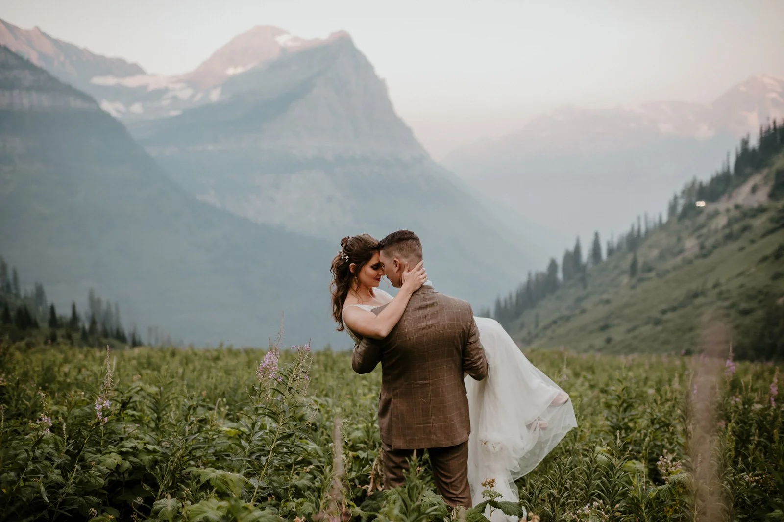 Although Casey and Cole had their official wedding ceremony with their family and friends along the shores of Lake McDonald at Apgar Amphitheater, they still wanted photos of just the two of them in a quiet, intimate setting. I immediately knew of the perfect place where the trails, flowers, and mountains combine for the most breathtaking views.